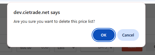 4. This list is now deleted and cannot be referenced moving forward. You will need to update any Public Trade customers that were referencing this price list to an existing one.