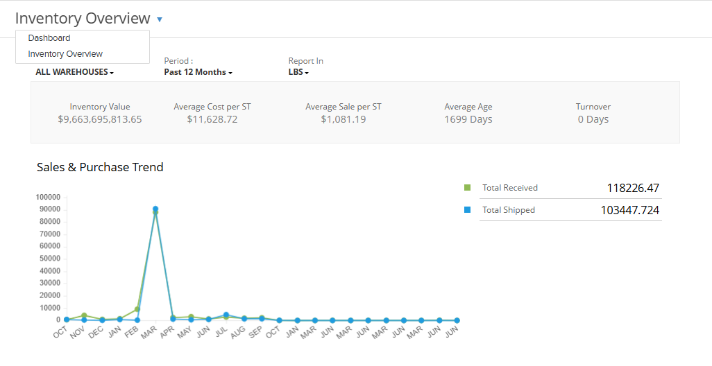 NOTE: if you have the inventory module enabled in your database, you also have the option to toggle to the Inventory Dashboard.