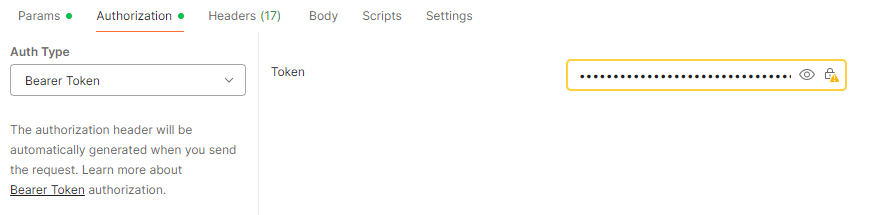cieTrade.net's current API version only provides support for GET methods used for retrieving data. Using GET method, you can get the list of resources or details of a particular instance of a resource. All cieTrade.net API calls are authenticated using an authorized UserID which is passed as parameters with the GET request URL, as well as a Bearer Token which needs to be provided in the authorization section of your BI tool or code call. The token can be found in your settings under "Integration" -> "Api Token" if your account has permissions to access cieTrade API. Below is an example in Postman of including the Bearer Token in your request.