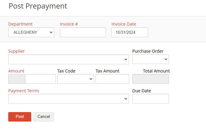 - Click New Prepayment.