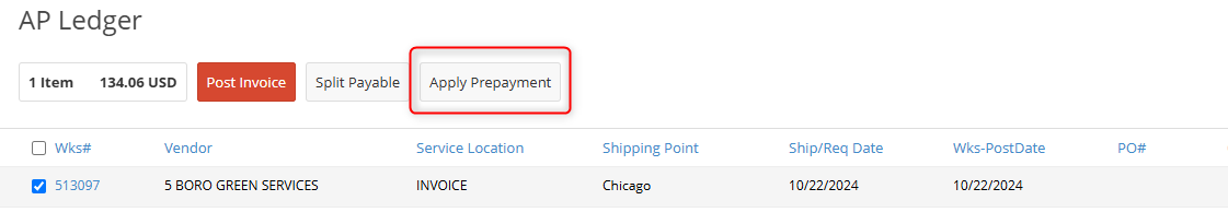 - Select the Accrued Payable you will be applying the prepayment to.