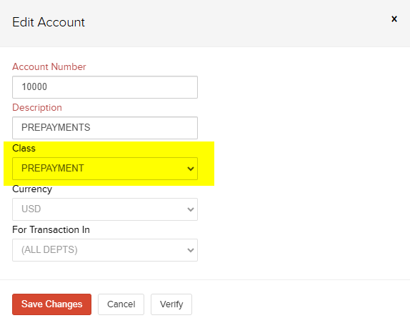 NOTE - A Prepayment account must be setup in cieTrade and your accounting system. This will be classified as an "Other Current Liabilities/Prepaid Expense" account type the accounting system.