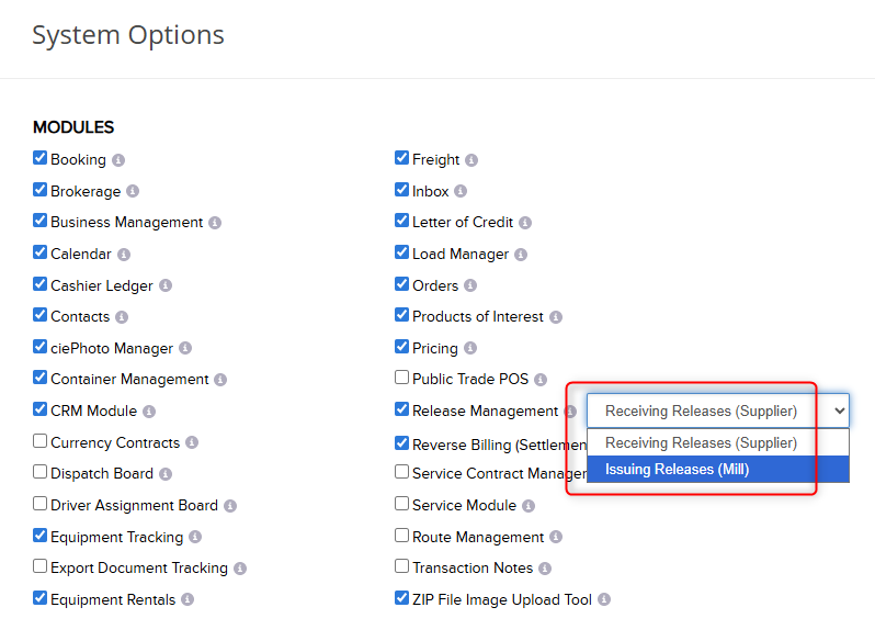 2. Navigate back to the dashboard and then back to System Options to select a Release Management type.