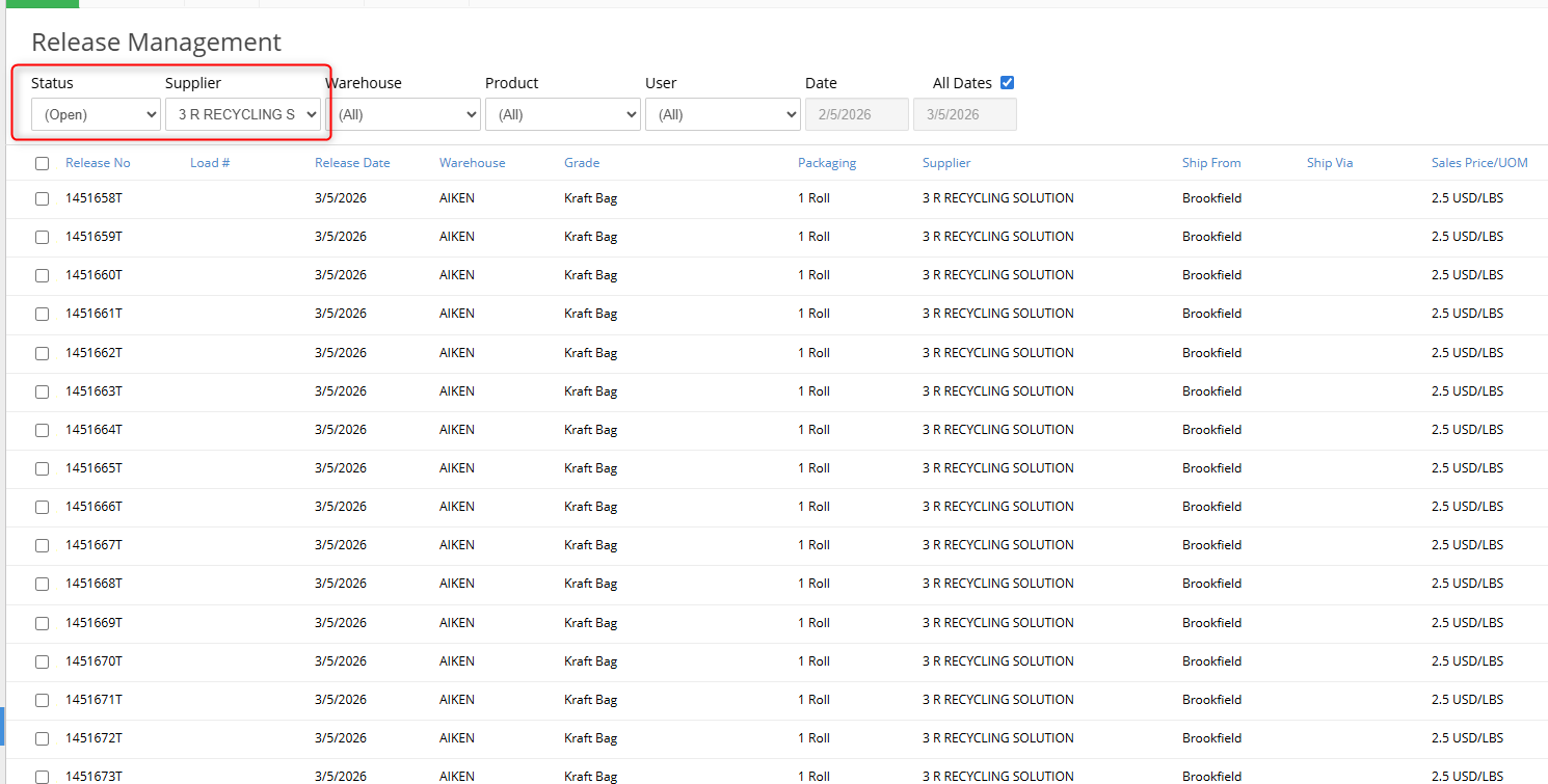 The Supplier drop down lets you filter by the Vendor. This can only be filtered on once the Release has been generated.