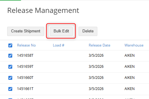 3. Down the line, if you need to update details on these releases in bulk, check off the releases on the inquiry. This will make a Bulk Edit button appear at the top.