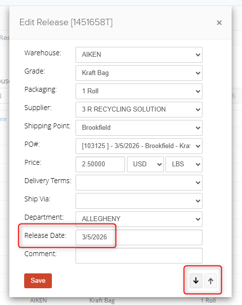 1. Click on the first release number line in the sequence to open up the Edit Release window, and update the Release Date field. Once finished, use the downward arrow to quickly save and move to the next release number in the sequence.
