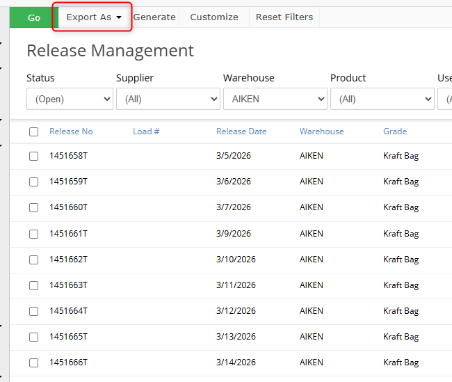 2. When you have your schedule set, you can export an Excel or CSV file to send the block of releases to your supplier for the month.