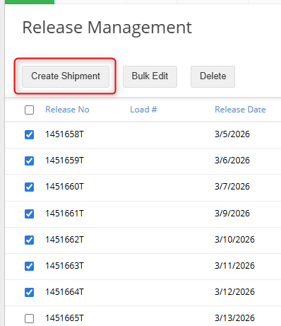 2. Check off the releases you want to generate worksheets for and click Create Shipment.