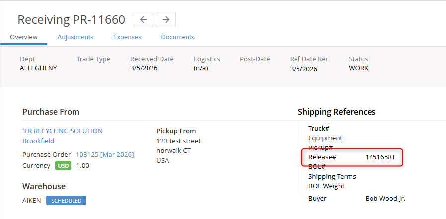 5. You will now see the release number on your Shipping References for each worksheet. If you still need to generate documents for your hauler or your supplier, they can be created in the Documents tab on the worksheet.