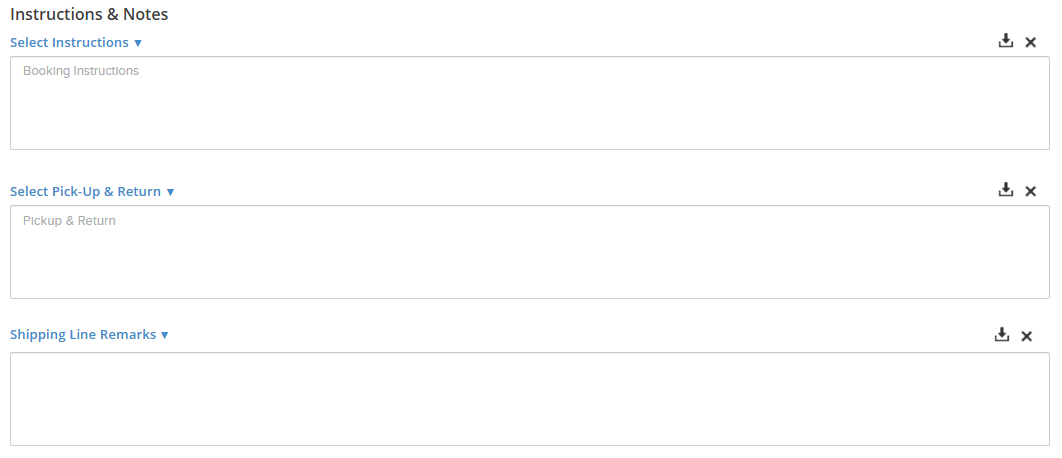 The Instructions field is used to print additional notes on the Bill of Lading and Booking Instruction documents.