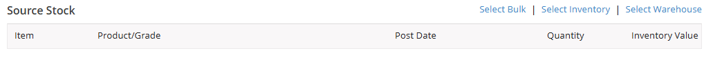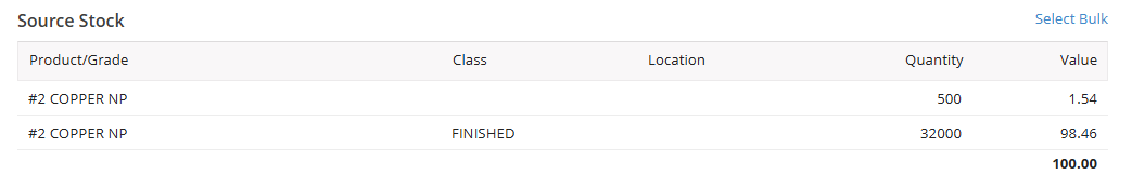 When Select Bulk is selected, a new page will open, allowing source stock to be selected.