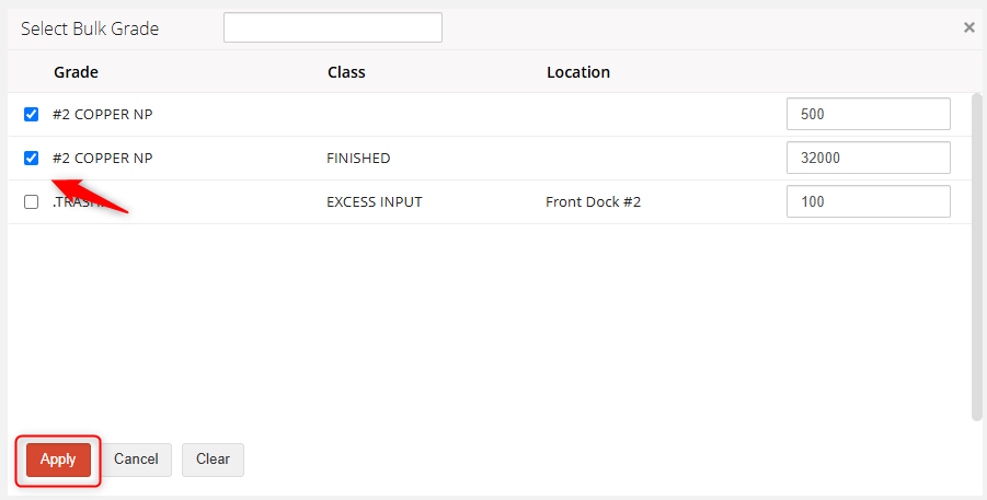 - Select the Bulk material you would like the expense to be applied to.