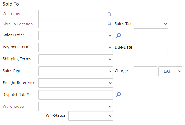 If desired, Shipping Terms can be selected. The Sales Rep may pull in automatically from the selected Customer or Sales Order, if applicable, or may be set manually if desired.