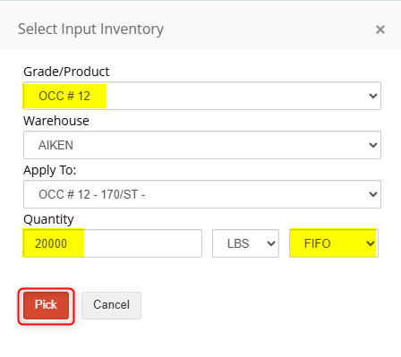 Select the Sold As product from the Apply to drop-down and use the appropriate filters to search for the item(s) you are pulling out of inventory. Then click Go to view a list of your available inventory.