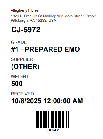- A PDF will open up in a second tab with the selected inventory item's label, which can be printed, downloaded, etc.