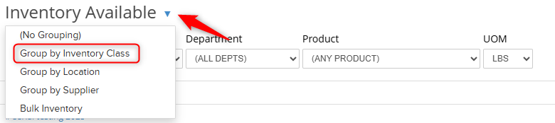 - Select Group by Inventory Class under the Inventory Available dropdown.