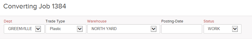 The Posting-Date populates automatically with today's date when the Converting Job is Posted (discussed later). This is a 'financial' date that represents when the expenses on the job are recognized and when the output items are created in your inventory.