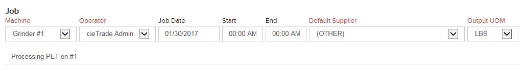 Use the Operator drop-down to select the user entering or performing this job. This will default to the user entering the job automatically but can be changed if desired.