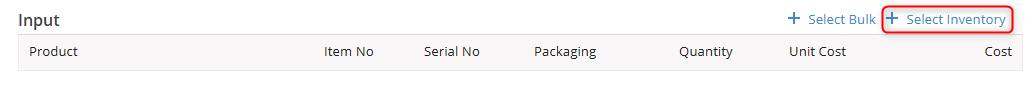 To add serial Input items to the job, click the Select Inventory button.