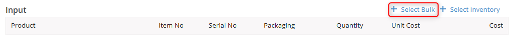 To add bulk Input items to the job, click the Select Bulk button provided in the Input section.