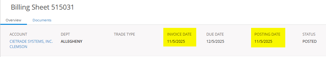 The Status is related to the status on the billing sheet. This allows you to have a user defined workflow for invoice approval. NOTE: Once a Billingsheet is put into APPROVED status, it will show in the Batch invoice feature. Any Billingsheet in an APPORVED or POSTED status will create a brokerage worksheet in the background where AP can be posted.